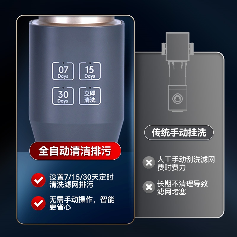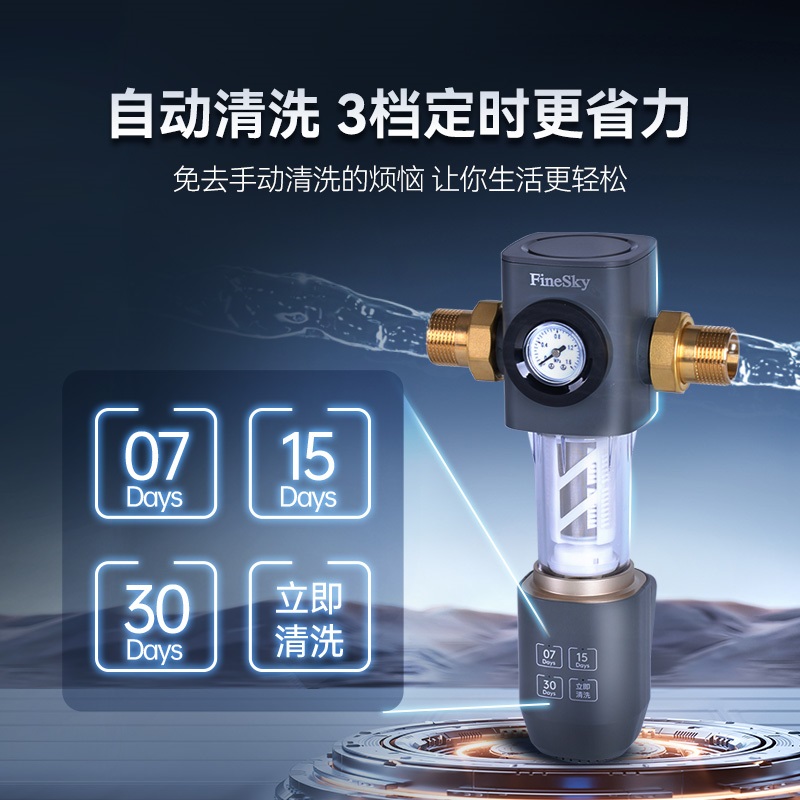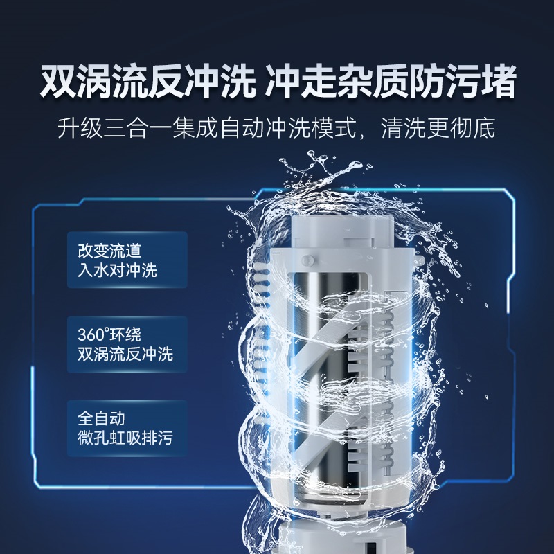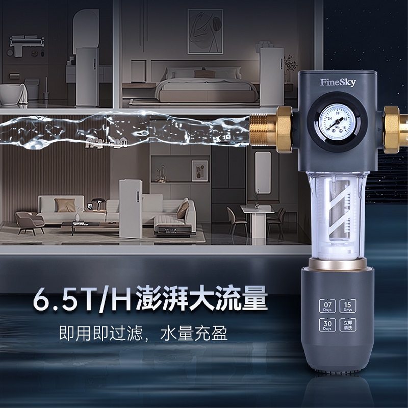 龍卷式深層清潔 反沖洗+雙面毛刷 40μm精密過濾 可視水壓表盤 316不銹鋼濾網(wǎng)終生免換,免拆洗 高分子航空級高韌性防爆濾瓶 6.5T/H澎湃大流量 H62+低鉛環(huán)保銅